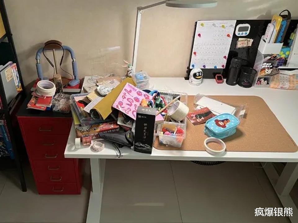 更糟的是桌面杂乱无章,课本、文具、玩具堆在一起,娃写两道题就忍不住摆弄杂物,专注力碎成渣。而且平价书桌质感极差,按压桌面时晃动明显,写字笔尖跟着共振,字迹都歪歪扭扭;