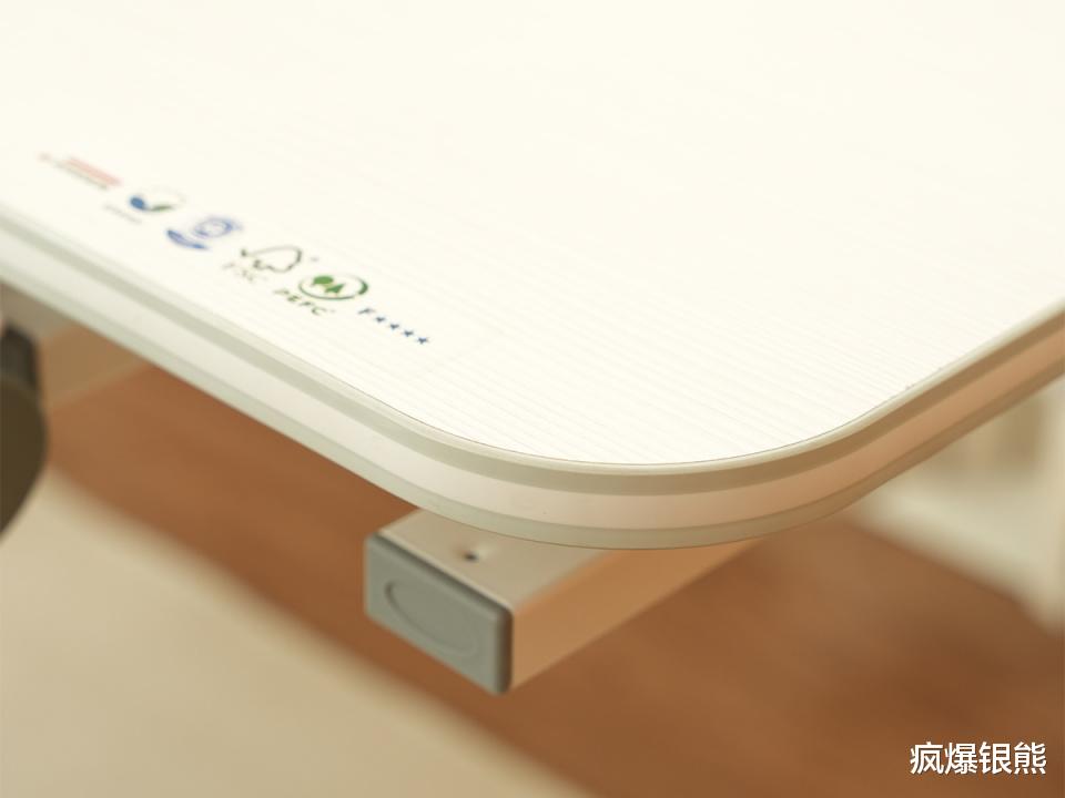 这是我最看重的一点,M6通过了严苛的德国蓝天使认证,甲醛释放量≤0.1mg/L,不仅远超国内E0级标准,优于日本F4星级要求。整桌采用零重金属、无毒粉体烤漆,边角、连接件等塑料零件均为食品接触级材质,孩子零距离贴肤接触也无需担心。开箱时几乎没有任何异味,只有淡淡的松木清香,安装后当天就让孩子使用,敏感肌娃接触桌面也没有出现不适,彻底打消了我对环保问题的顾虑。