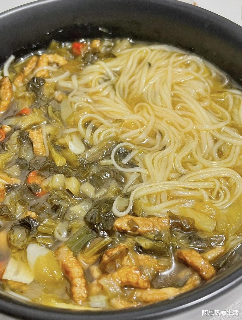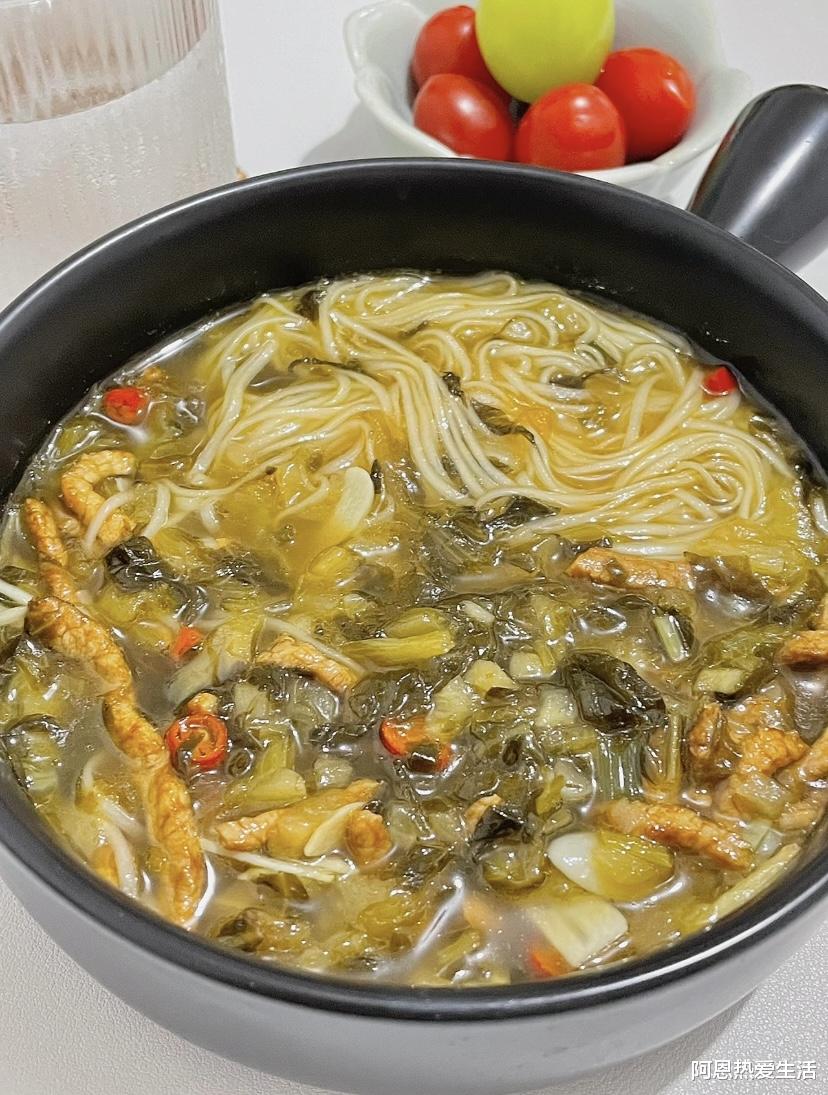 自打那天起,这个味道竟深深烙在心里。如今每每一个人吃饭,雪菜肉丝面就成了首选。端上来后,我却时常等不了那"捂"的一小会儿,从前的味道也便没了……