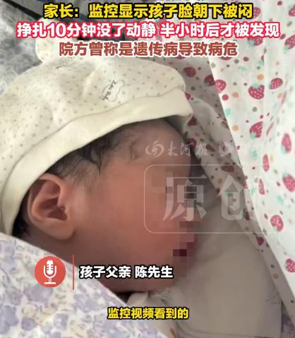 据大河报独家报道,安徽一名仅27天的新生儿因黄疸入住当地妇幼保健院西区,常规治疗期间,孩子俯卧挣扎约13分钟后逐渐失去动静,间隔44分钟才被医护人员发现并抢救,最终不幸离世。