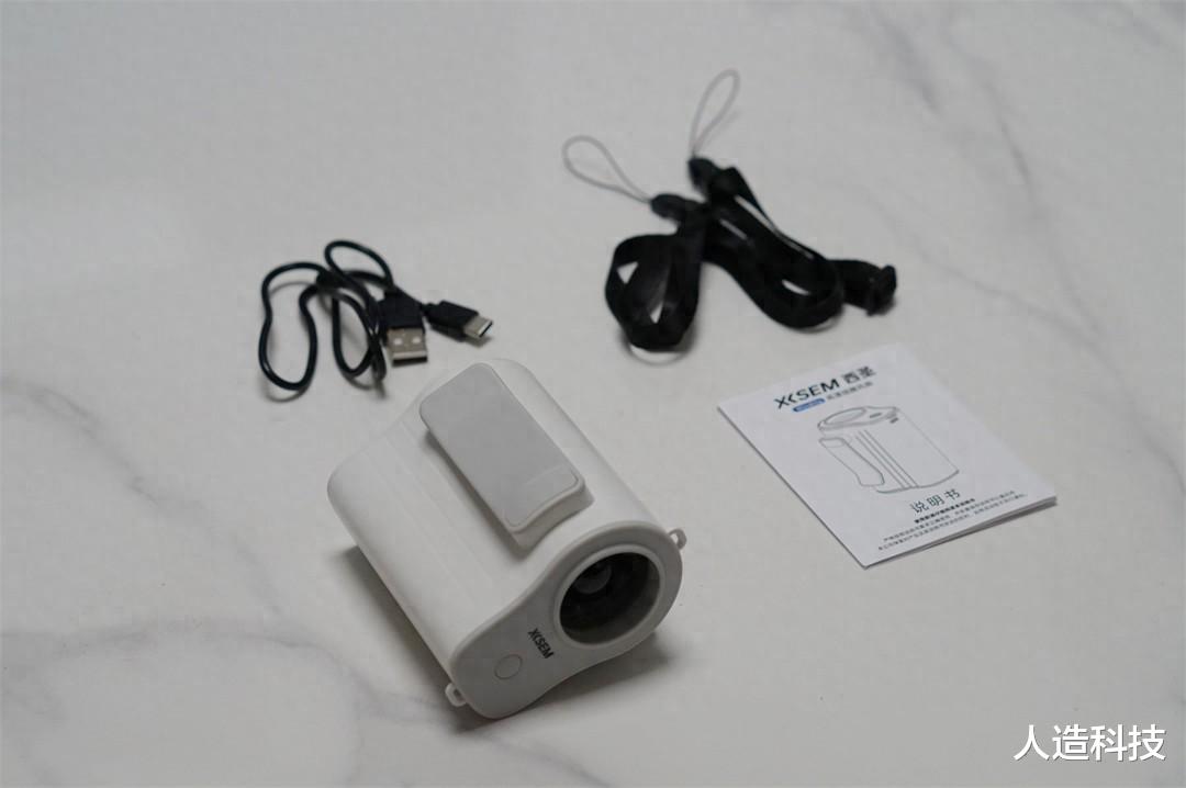 西圣高速挂腰风扇包装盒采用蓝、白设计,盒上不仅印着产品外观、也印着这款产品的一些优点。这款风扇有黑、白两个配色,我选择的是白色。盒内除了风扇,厂家还给我们配备了充电线、挂绳、说明书,配件非常齐全。西圣高速挂腰只有手掌般大小,不仅小,也非常轻,携带很方便。
