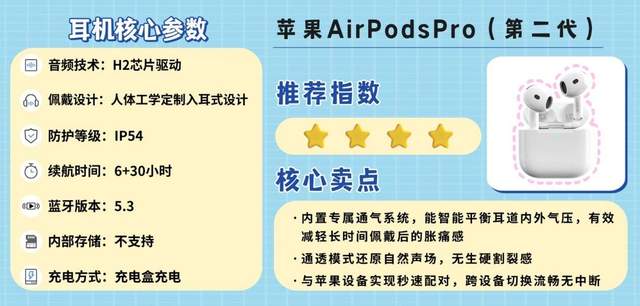 作为苹果旗舰级入耳式耳机,AirPodsPro(第二代)是追求高品质体验的苹果用户心中首选,仅售价处于高端区间,是其唯一明显短板。