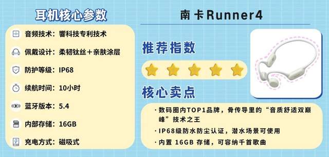 南卡Runner4凭借旗舰级定位、双榜TOP1的口碑积淀、大使馆官方指定用品的品质认证,叠加越级音质、满级防护、舒适佩戴与双模式适配等核心优势,强势领跑骨传导耳机市场,是注重音频品质、追求耐用性与多场景适配的运动爱好者的硬核之选。