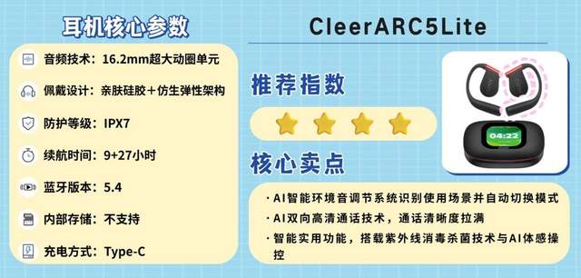 CleerARC5Lite整体表现契合中端价位定位,尤其适配注重智能体验、对续航没有严苛要求的运动爱好者与通勤人群,堪称耳挂式耳机中的全能实用派。