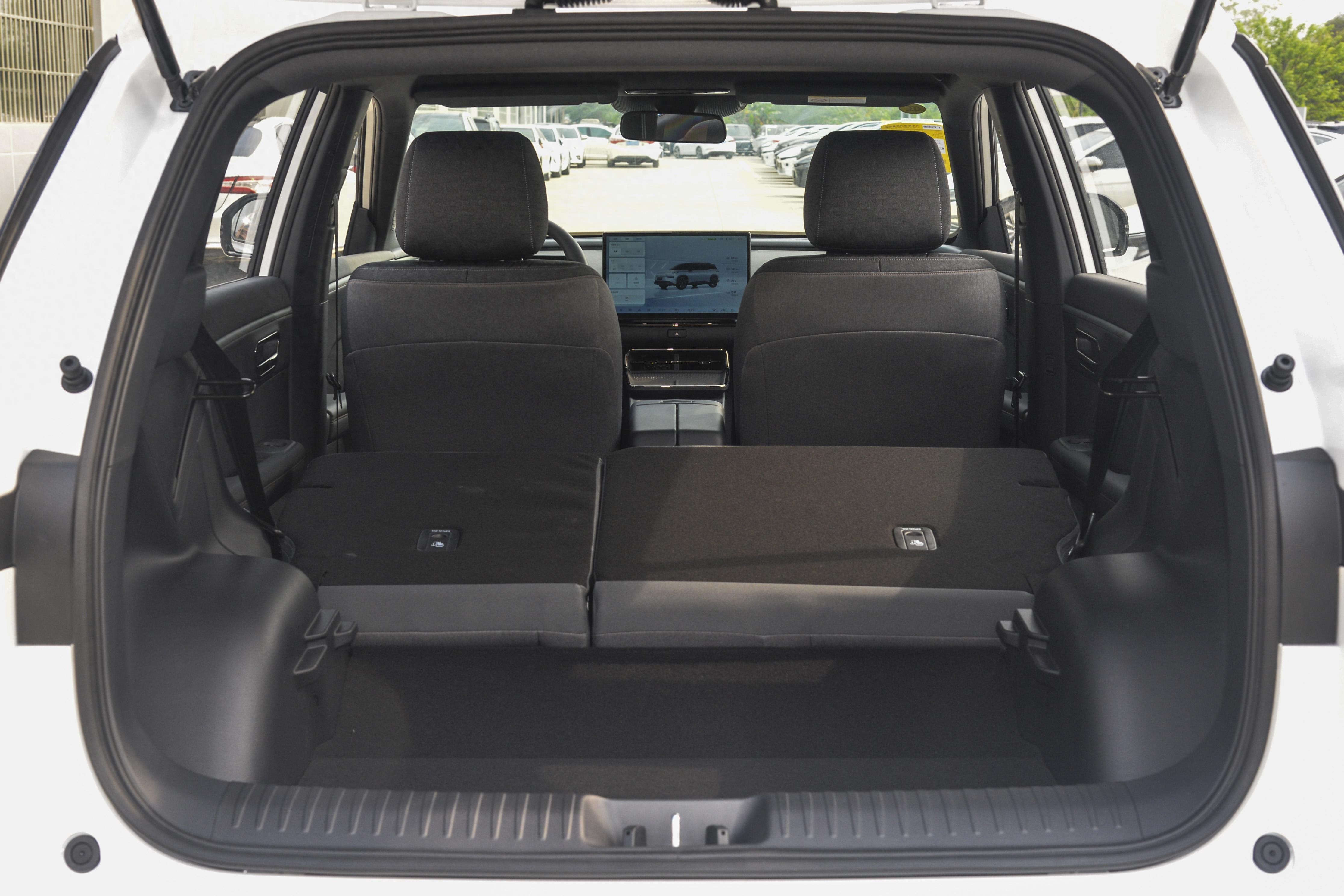 “A级定位、B级尺寸、C级后排空间”是铂智3X的空间设计理念,实际体验下来,其空间表现确实超出了紧凑型SUV的常规水平。2765mm的超长轴距全部服务于车内乘坐空间,前后排腿部距离接近1米,身高180cm的乘客坐进后排,腿部仍有两拳以上余量,完全可以轻松翘起二郎腿,彻底告别了紧凑型SUV后排拥挤的通病。车内纵向空间高达1.215m,即便是7岁的孩童也能在车内直身站立,家庭出行时,孩子在后排活动的自由度大大提升。后排中间地板几乎纯平,有效提升了中间乘客的乘坐舒适性,满员出行时,三位成年人也能各自保持舒适姿态。座椅的多功能设计进一步拓展了空间的实用性。前排座椅放倒后长度可达1.8m,后排座椅支持比例放倒,全部放倒后整体长度可达3m,形成一个平整的大空间,铺上床垫就能变身“移动大床房”,无论是长途旅行中的临时休憩,还是露营时的睡眠需求,都能轻松满足。后排座椅的多功能扶手还集成了可折叠小桌板,商务办公或孩子学习都十分方便,让车内空间兼具休憩、办公等多种功能。储物空间方面,除了丰富的车内收纳,后备箱常规容积表现出色,能够轻松容纳三个大尺寸行李箱和日常杂物;放倒后排座椅后,扩展容积可满足大件物品的装载需求,搬家、采购或露营装备运输都毫无压力。1.14㎡的全景天幕配合电动遮阳帘,既提升了座舱内的采光效果,让空间更显通透,又能有效隔绝紫外线,兼顾了舒适性与实用性。
