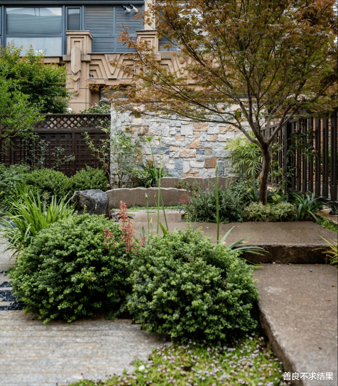像这种小面积庭院,通过各种合理的搭配,照样可以营造出“人杰地灵”的生活氛围,照样可以承担起我们的“庭院梦想”的。