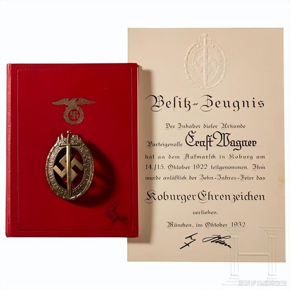 该证书的持有者党员.........参加了1922年10月14/15日在科堡的活动。在十年庆典之际,他被授予科堡奖章。慕尼黑1932年10月。