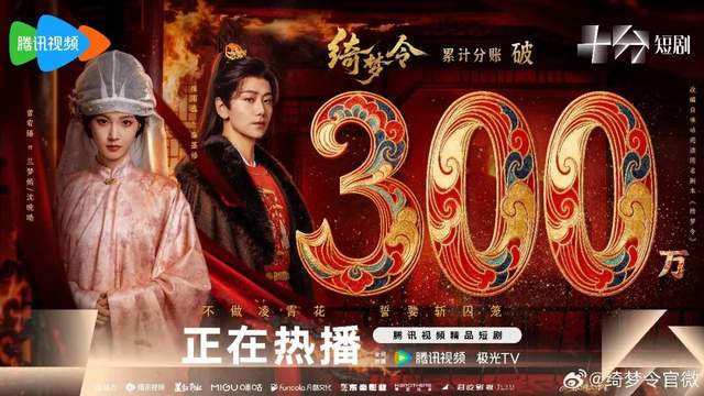 另一部爆款《绮梦令》则聚焦女性救赎,上线后迅速登顶猫眼、vlinkage热度日冠、周冠,腾讯视频站内热度值超17000,斩获短剧热搜榜与热播榜双第一。