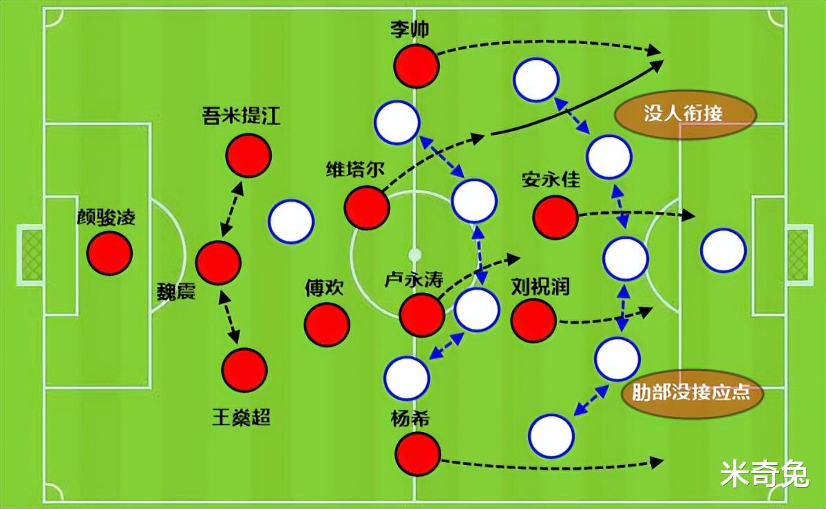 哪怕维塔尔可以吸引防守人后,给李帅送出传球,但是李帅拉开宽度接球后,直接传中,没法威胁对方有双外援中卫的五后卫防线。