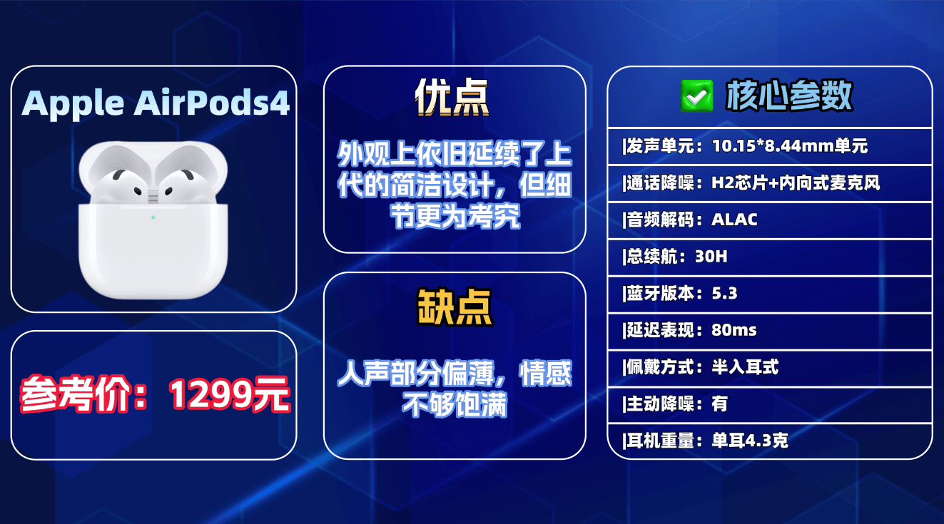 综合推荐3、苹 果A irPods 4蓝牙耳机