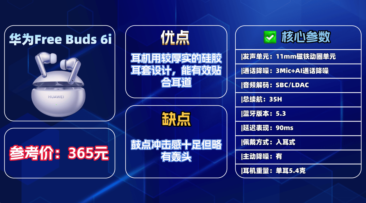 综合推荐9、华 为F reeBuds 6i蓝牙耳机