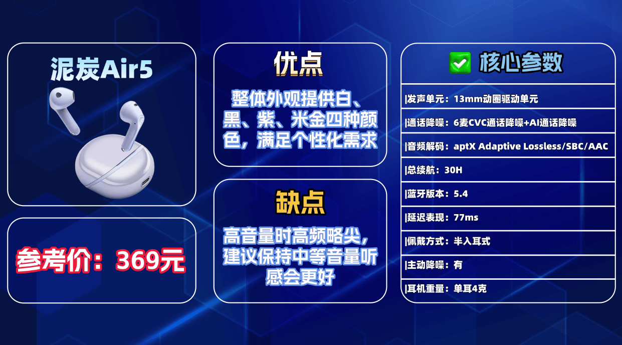 综合推荐8、泥 炭A ir5蓝牙耳机