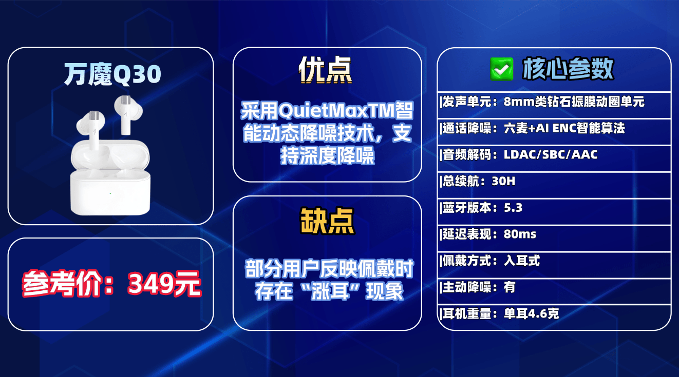 综合推荐5、万 魔Q 30蓝牙耳机