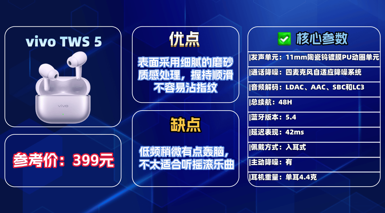 综合推荐4、V ivo T WS 5蓝牙耳机
