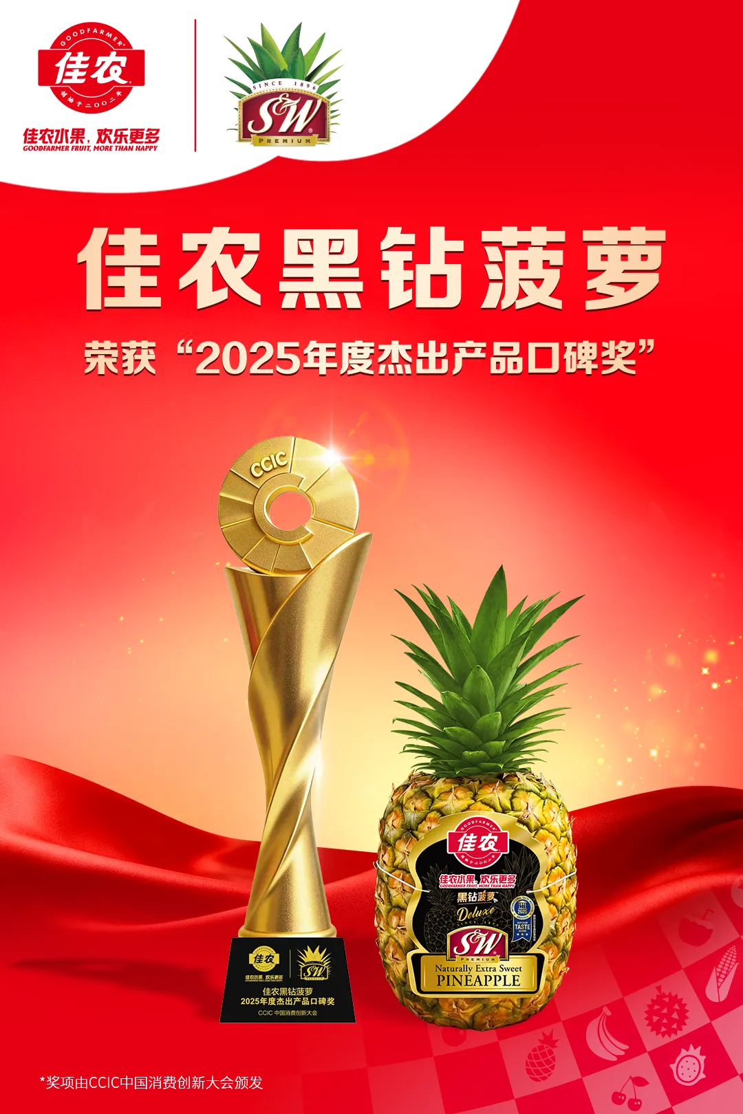 1月21日,以“创新引领消费新时代”为主题的2025中国消费创新大会暨第四届国际品质节于北京盛大启幕。在这场行业盛会上,佳农水果凭借深厚的品牌积淀与突出的市场表现,一举斩获“2025年度行业领军品牌”奖。同时,明星产品佳农黑钻菠萝,更以卓越口碑与硬核品质实力,摘得“2025年度杰出产品口碑奖”。两大荣誉加身,既是行业对佳农水果领军地位的认可,更是广大消费者对其深耕供应链、坚守品质承诺的高度信赖。