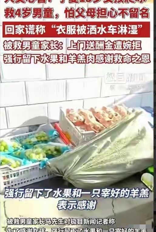 她 的父母在外地打工,一年就回来两次,奶奶有高血压,她每天放学先给奶奶倒杯温水,再写作 业 ,父亲发视频说“宝贝,爸爸为你骄傲”,下面的评论她都一一回复:“谢谢叔叔阿姨,我只是做了该做的,”李家人的实诚,像地里的土豆,不张扬,却热乎,被救的马先生当晚就找过来,拎着现金被拒,把一塑料袋羊羔 肉留下:“这 是家里养的,你补补 身子,”后来又买了 件粉色羽绒服,说“丫头冻坏了,得穿暖点”。