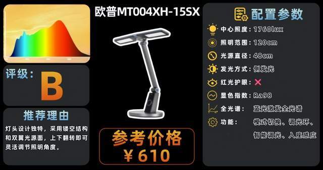 推荐理由:它的色温范围比较广3900K-4600K,可以根据需求调节色温