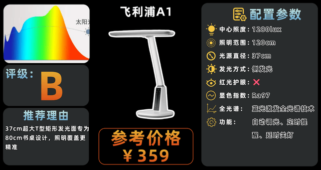 推荐理由:采用了19.5cm的发光面,照射范围更广,可以轻松覆盖大小书桌