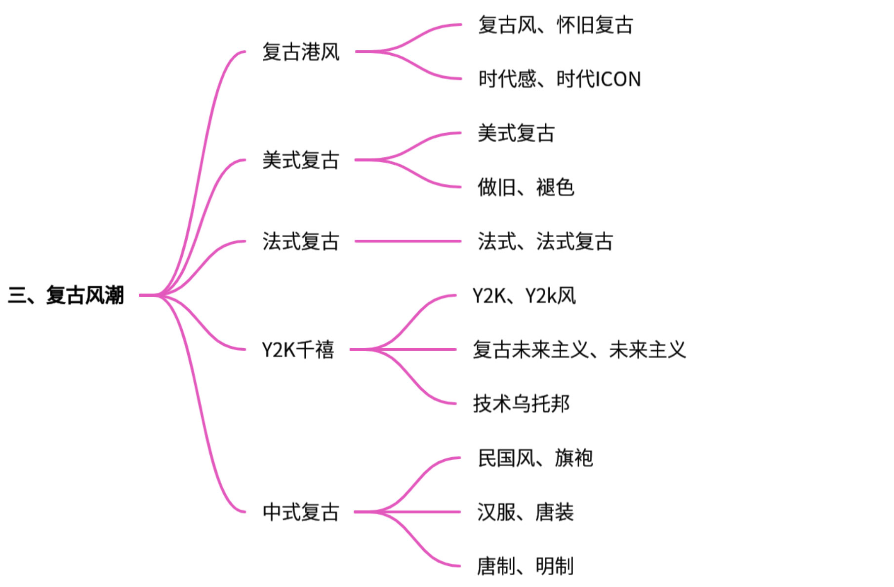 ·复古港风/美式复古/法式复古:分别指向特定地域和文化背景的复古风格,美式复古常与做旧、褪色工艺关联。