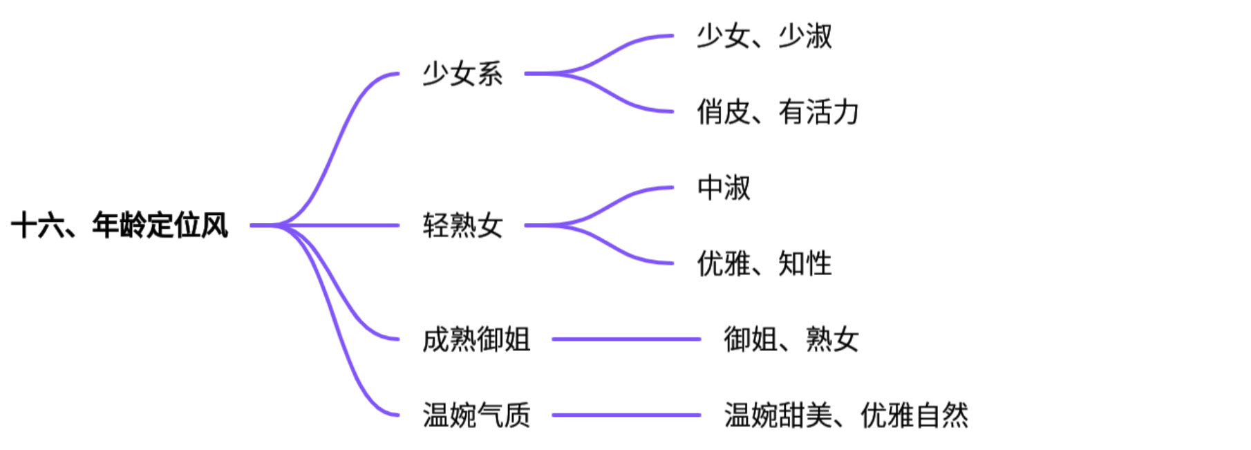 十六、 年龄定位风针对不同年龄段或气质阶段女性的风格定位,与淘宝的人群标签策略紧密相关。