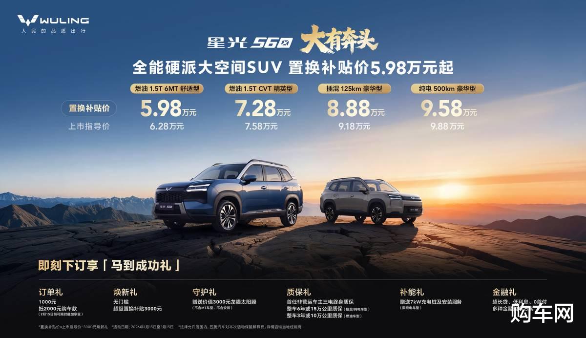 1月15日,在此前东盟国际车展上惹人注目的星光560,迎来正式上市,该车是五菱旗下首款“全能硬派大空间SUV”,是五菱2026年开年的重磅力作,无论是价格还是产品方面,都做到了“诚意拉满”,有着重塑6万级家用SUV价值标杆的出色表现。