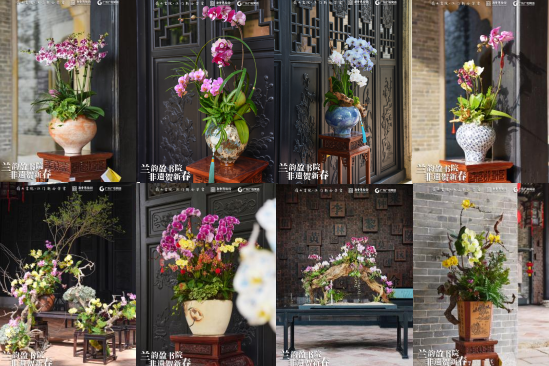这场兼具观赏性与文化性的兰花展,由广东十大花木先锋人物黄仔、世界花卉协会会员伍燕青等花艺大咖亲自指导布展,将精巧花艺、书院底蕴与马年吉祥寓意有机融合,每一处布置都独具匠心。