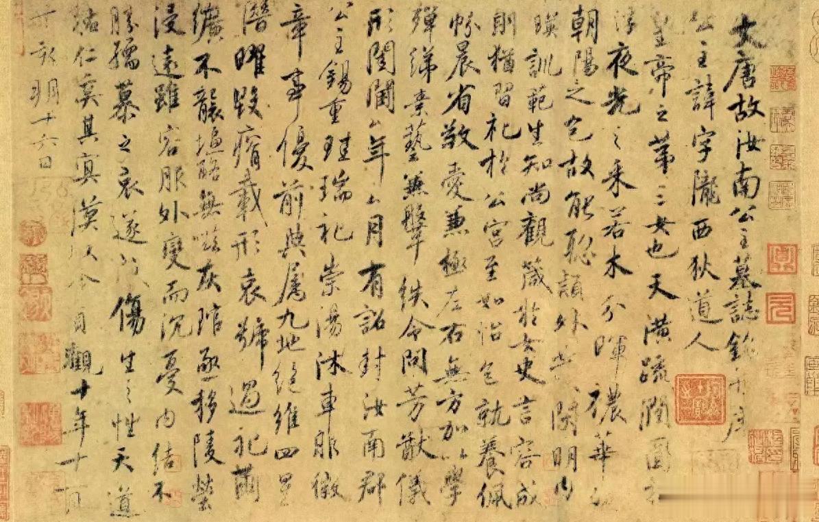 《汝南公主墓志铭》现藏于上海市博物馆,为纸本手卷行书,纵约25.9厘米、横约38.4厘米,共18行、222个字,字径大小约1厘米,写于贞观十年(636年)。汝南公主是唐太宗最疼爱的女儿之一,去世时不足18岁,他极为悲痛,命虞世南亲自撰文并书写墓志。