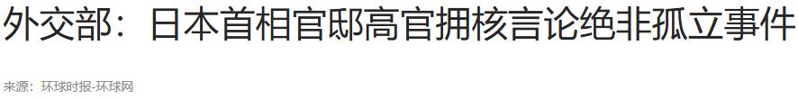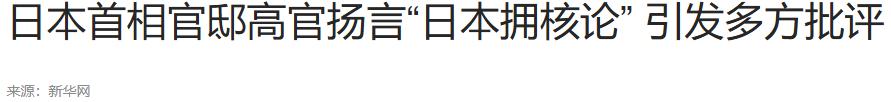 据新华网12月22日报道称,日本首相官邸一名负责安全保障政策的高官扬言“日本应拥有核武器”,其拥核言论直接引发日本国内外震动,日本前政要、朝野政党、各地方和民间组织纷纷提出批评,有部分称,拥核“对日本绝无益处”;也有部分表示,任命这种人担任首相官邸负责安保政策的高官本身就存在问题。“这是任命者的责任,希望他们尽快采取行动。”多家媒体评论则认为有关言论“不可接受”。