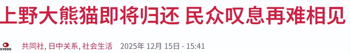尽管日本财政恶化严重,可高市政府依旧拒绝撤回,这直接影响了接下来的中日“熊猫交流活动”,让“能否实现新的熊猫租借”成了未知数。据共同社12月15日消息,东京都在当天宣布,东京上野动物园的龙凤胎大熊猫“晓晓”(雄性)和“蕾蕾”(雌性)将于明年1月下旬归还中国。附近“阿美横商店街”的民众纷纷感叹称,“以后见不到了,真是遗憾”等。考虑到日中关系急速降温,很多人认为“或许再也租借不到”,颇为灰心丧气。