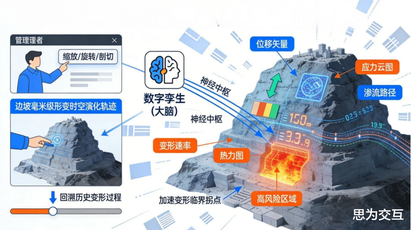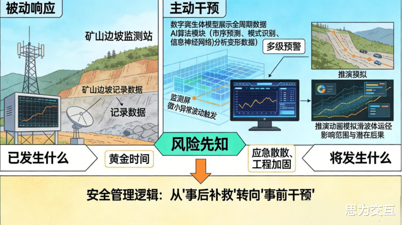 “风险先知”是本次革命的灵魂所在。它标志着矿山边坡监测的核心目标发生根本转变:从记录“已发生什么”转向预测“将发生什么”。依托数字孪生体积累的全周期数据,结合人工智能算法(如时序预测、模式识别、物理信息神经网络),系统可深度挖掘变形数据背后的隐性规律,识别早期失稳征兆。当监测数据出现微小异常波动,模型即可触发多级预警,并模拟滑坡体运动路径、影响范围与潜在后果,生成可视化推演动画。这不仅为应急疏散、工程加固争取宝贵“黄金时间”,更推动安全管理逻辑从“事后补救”转向“事前干预”。风险先知的本质,是将监测数据转化为可行动的洞察(Actionable Insight),使安全管控具备前瞻性与主动性,重塑“预防为主”的安全文化内核。