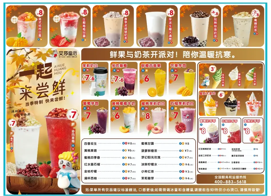 艾莎皇后还有一套“隐藏的升级系统”:加珍珠1元,加椰果1元,升级大杯2元。统计显示,超过60% 的顾客会选择至少一种加料或升级,客单价因此提高20-30%。