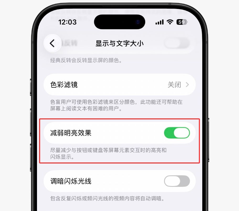 在 iOS 26.4 系统中,苹果增加了“减少高亮效果”的开关,现在现在改成减弱明亮效果。开启后原来有亮度的现在不显示亮度了,键盘、按钮等有高亮的地方效果减弱了。