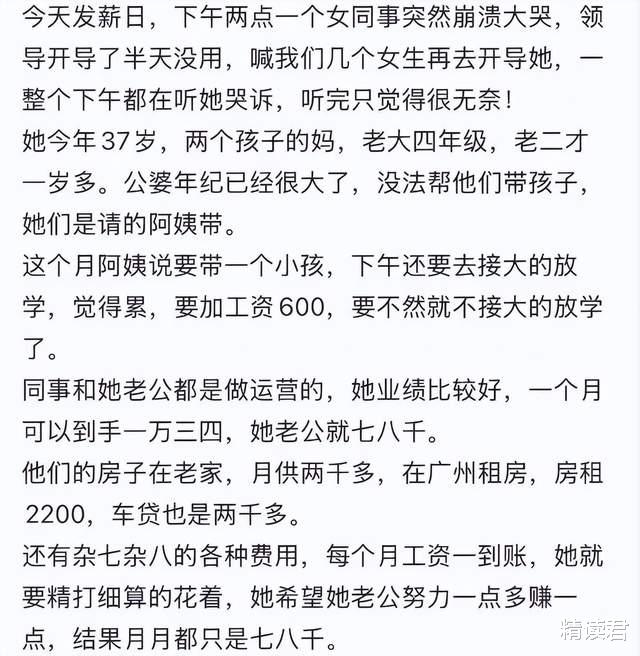 最近看到一则帖子:今天发薪日,一个女同事突然崩溃大哭。