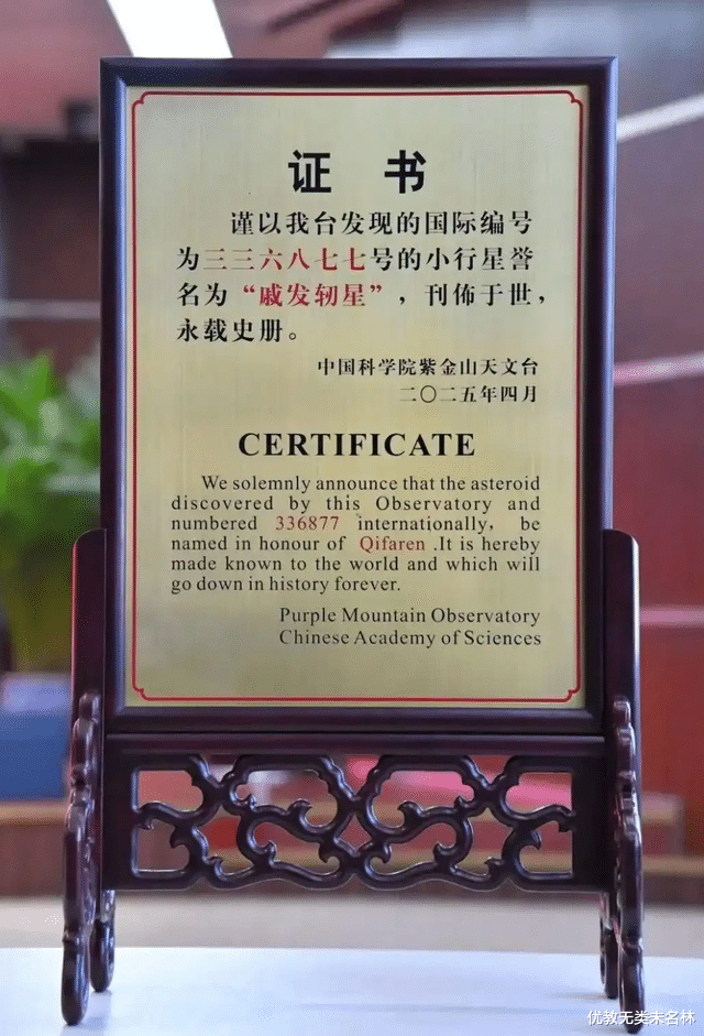2025年12月17日,由中国科学院紫金山天文台发现的国际编号336877号小行星,被命名为“戚发轫星”,以表彰他对中国航天事业所作出的卓越贡献。