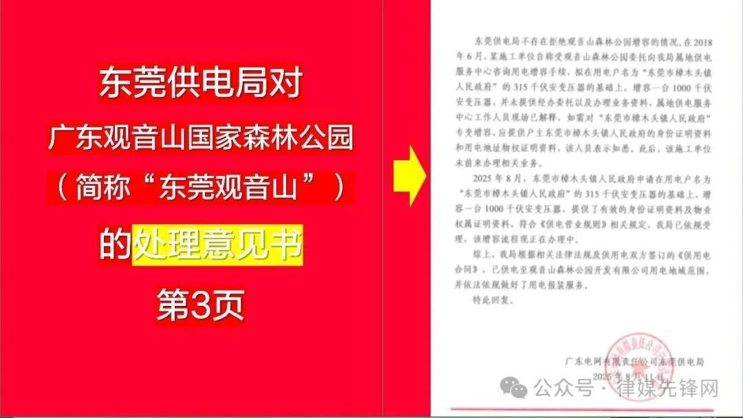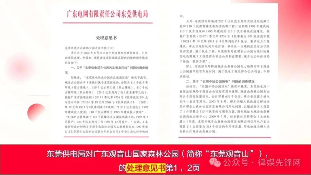 近期,广东观音山国家森林公园(以下简称“东莞观音山”)与广东电网有限责任公司东莞供电局(以下简称“东莞供电局”)的争议,随着一份《处理意见书》的出台再次进入公众视野。