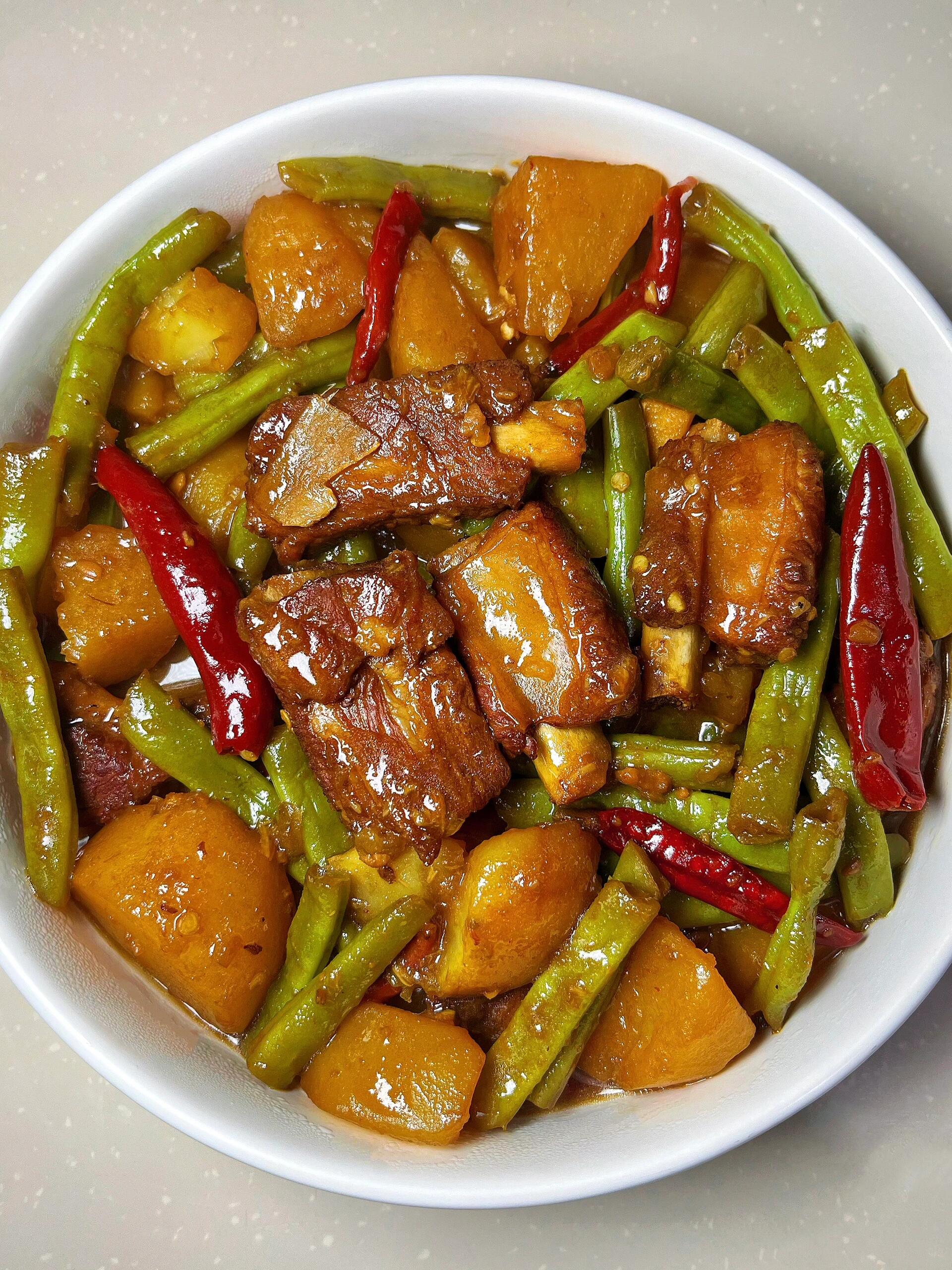 要说东北菜里的扛把子,那必须是豆角炖排骨!这道菜简直就是米饭杀手,香到能让你多吃两碗饭不带眨眼的。今天我就手把手教你,怎么在家炖出一锅软烂入味、香气四溢的豆角炖排骨,保证零失败!