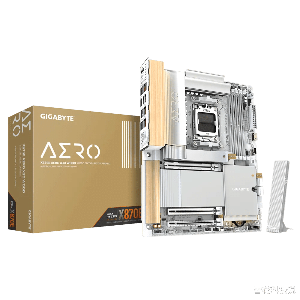 为满足追求独特美学与硬核性能兼备的用户,技嘉推出了X870E AERO X3D WOOD主板。这款产品将天然木材的温润质感融入科技硬件,不仅在外部装饰上采用了独特的木纹元素,更将这一设计理念延伸至BIOS界面,实现了从视觉到交互的整体性风格表达。在核心规格上,它搭载了16+2+2相供电系统,并采用8层2盎司铜PCB板材作为电气基础。散热结构整合了新一代VRM装甲、直触式强化热管与高导热系数的垫片,配合PCB背板的辅助散热设计,共同保障了高负载下的稳定性。该主板还提供了4个M.2插槽,其中包含2个PCIe 5.0接口,以满足高速固态硬盘的配置需求。