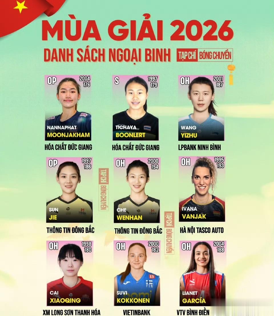 除了在意大利、土耳其、美国、哈萨克斯坦打球的朱婷、已经回国的李盈莹、庄宇珊、还有王媛媛、龚翔宇季后赛结尾阶段的比赛,越南全锦赛第一阶段比赛加盟了4名中国女排球员,几乎占到了9名越南女排外援的半壁江山。