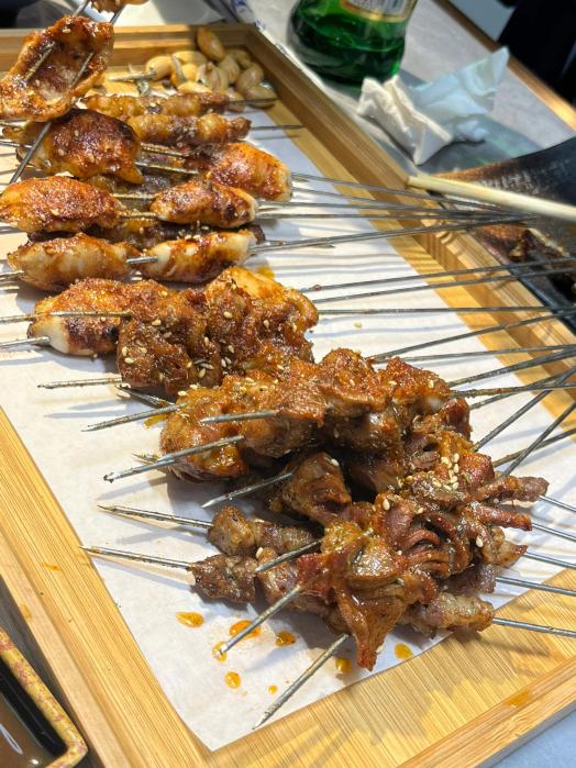 烤羊腰处理得干净无腥,烤得外焦里嫩,撒上孜然超够味。烤玉米粒香甜多汁,一串接一串停不下来。