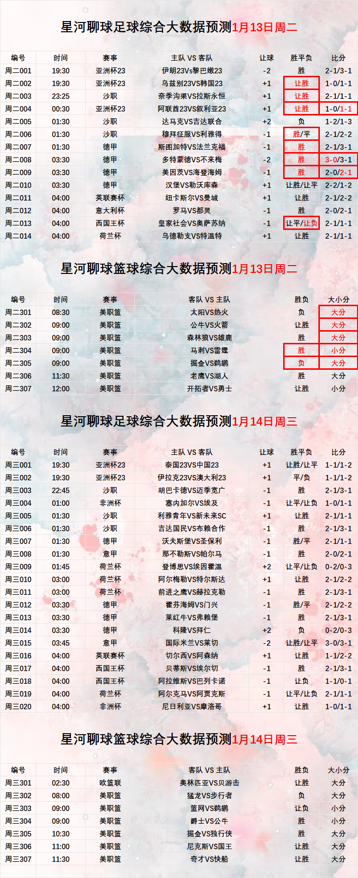 2026年1月14日 【星河聊球足球篮球扫盘】五大联赛 美职篮