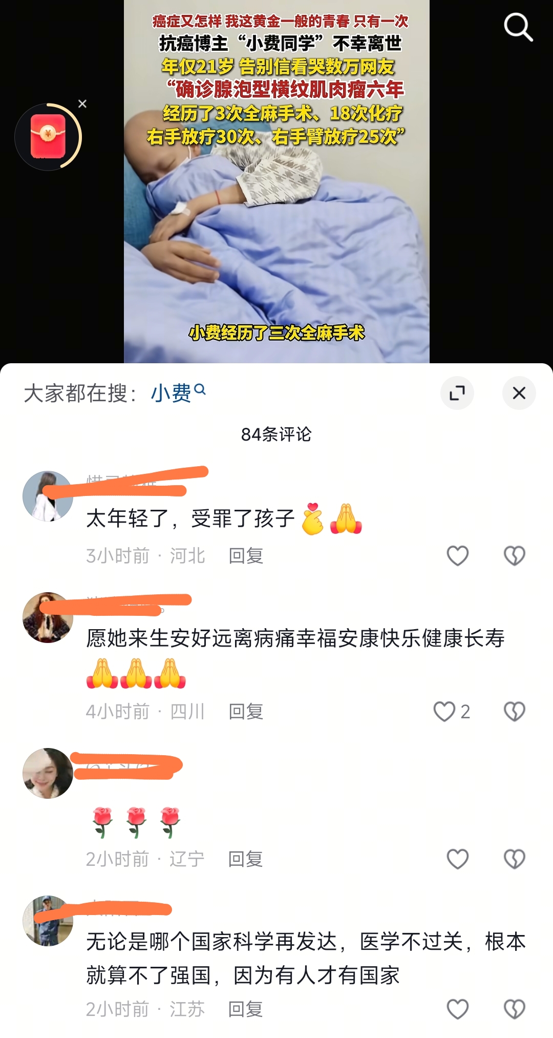 3月18日,网上穿来噩耗,和癌症死磕了整整6年的小姑娘“小费同学”,还是没能留住自己黄金一般的青春,永远停在了21岁的春天里。