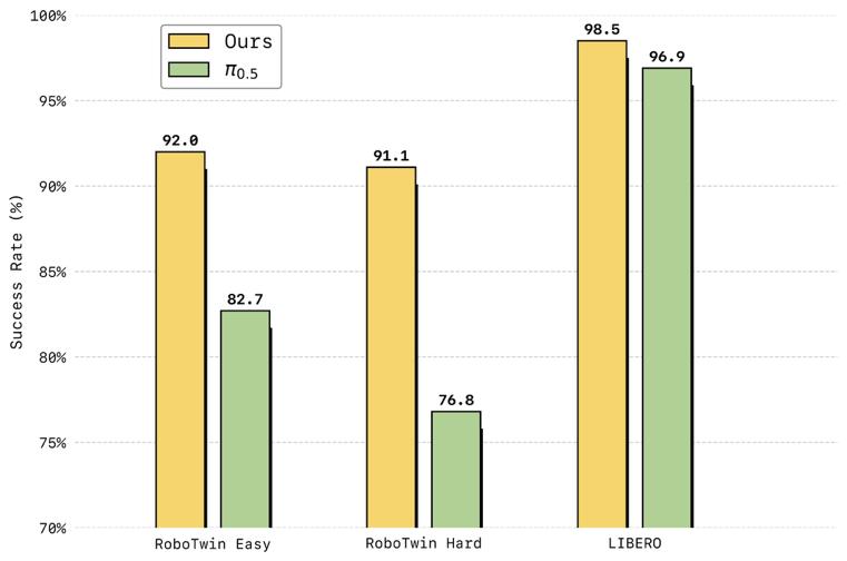 (图说:LingBot-VA 在LIBERO与RoboTwin 2.0仿真基准测试中刷新现有SOTA)