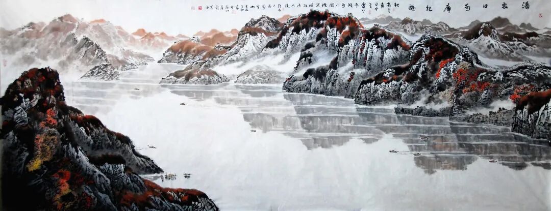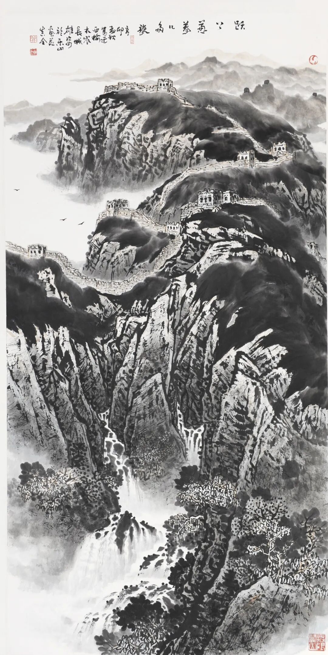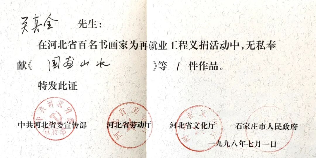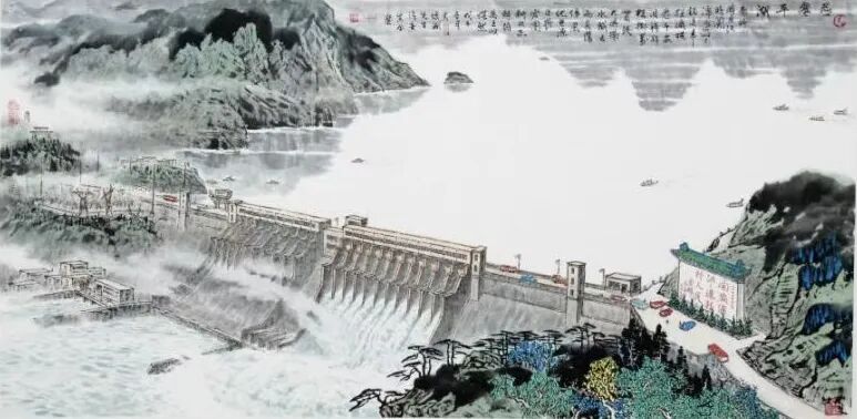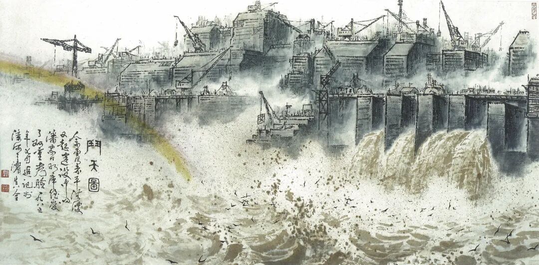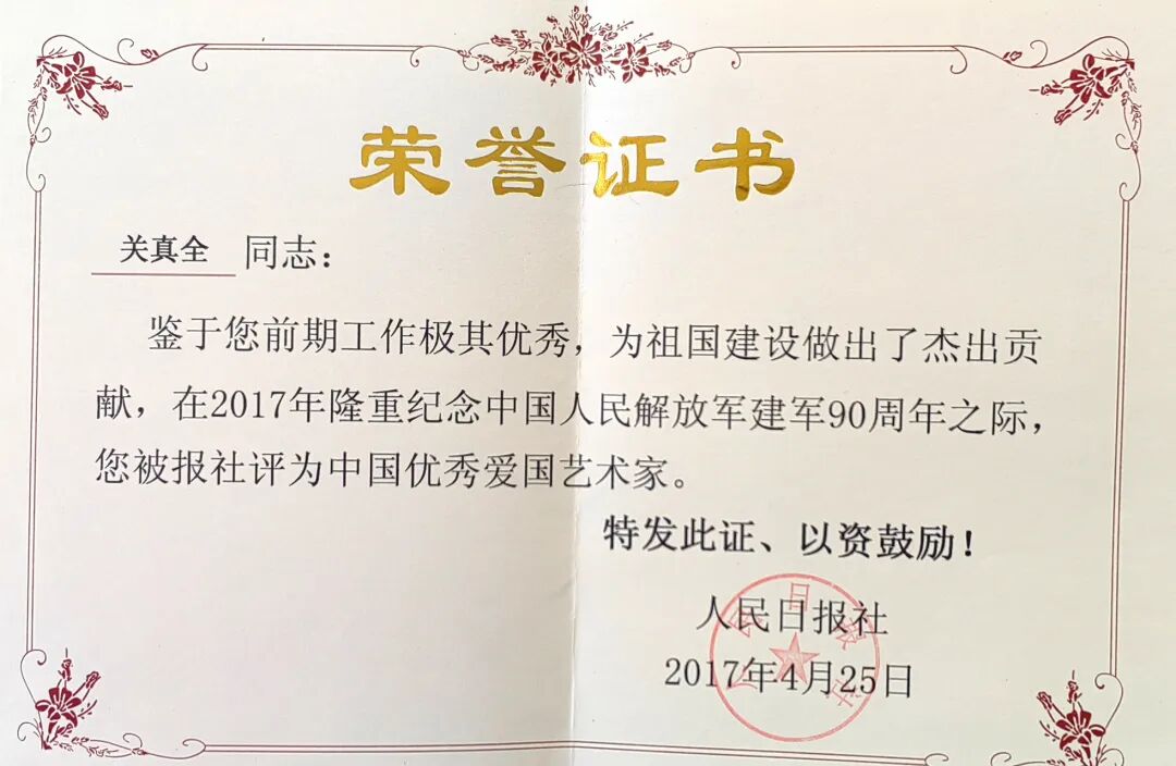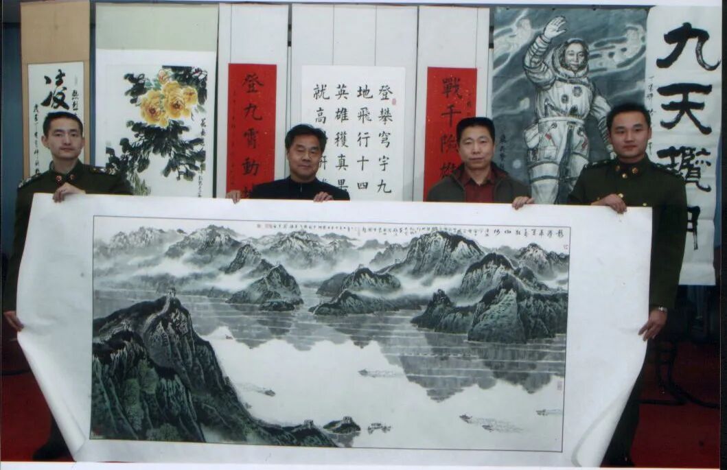 关真全应邀参加神五航天四周年记念活动,将创作的巨幅国画《龙腾华夏 气壮山河》赠送中国航天员训练中心,中心副主任楊立伟少将