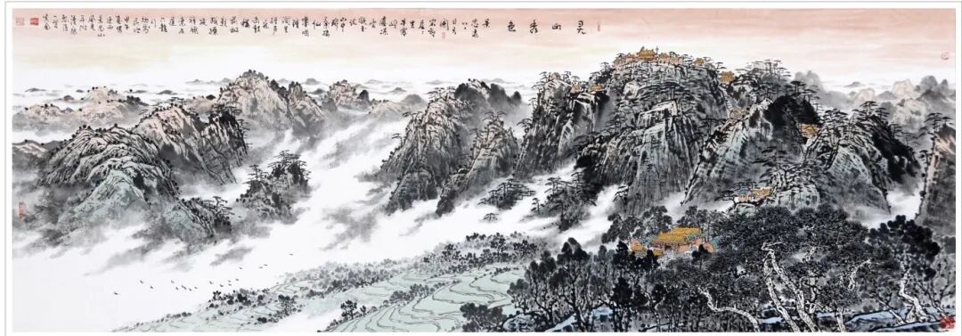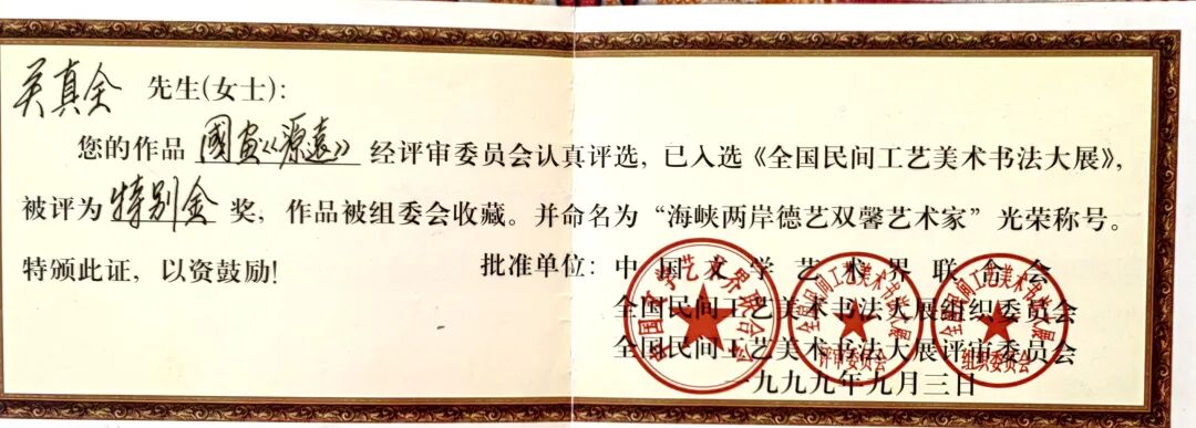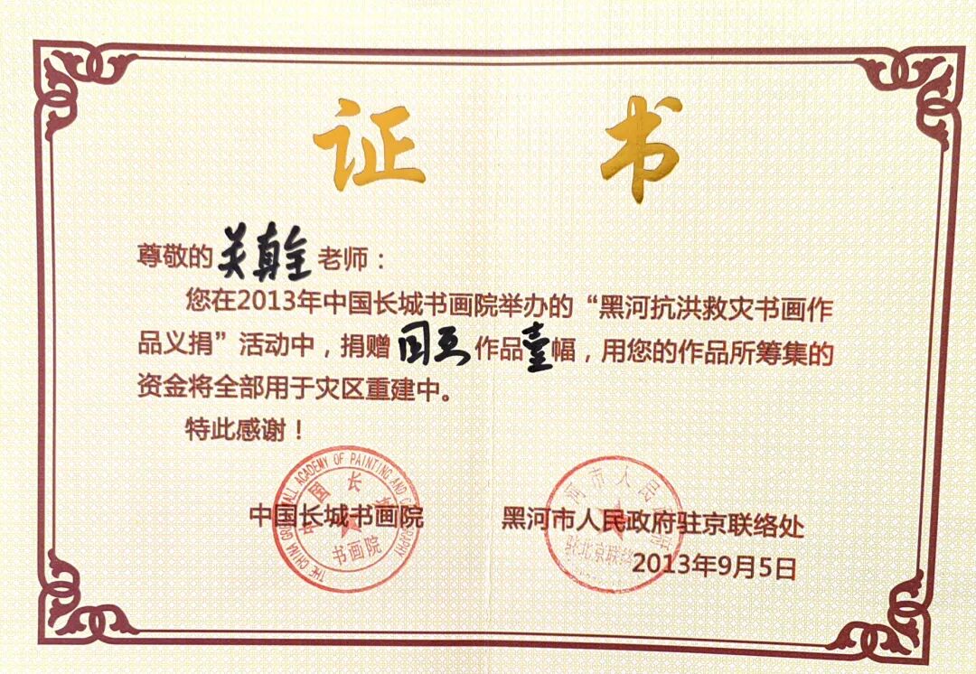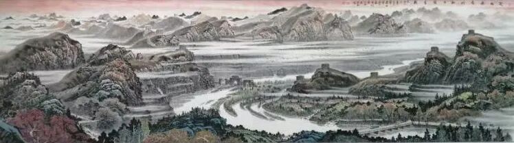 关真全应邀参加神五航天四周年记念活动,将创作的巨幅国画《龙腾华夏 气壮山河》赠送中国航天员训练中心,中心副主任楊立伟少将接收馈赠。
