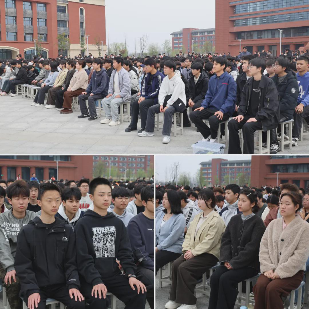 为进一步提升全校师生的法治观念和安全防范意识,切实筑牢校园安全屏障,共建平安和谐校园,2026年3月24日下午,信阳技师学院在北广场举行法治教育专题报告会。全体在校学生、班主任及二级学院学管人员齐聚现场,共同接受法治教育洗礼。本次报告会由学校党委委员、副校长钱旺主持,信阳市公安局平桥公安分局何豫辉警官、震雷山派出所余洪磊所长受邀莅临现场授课。