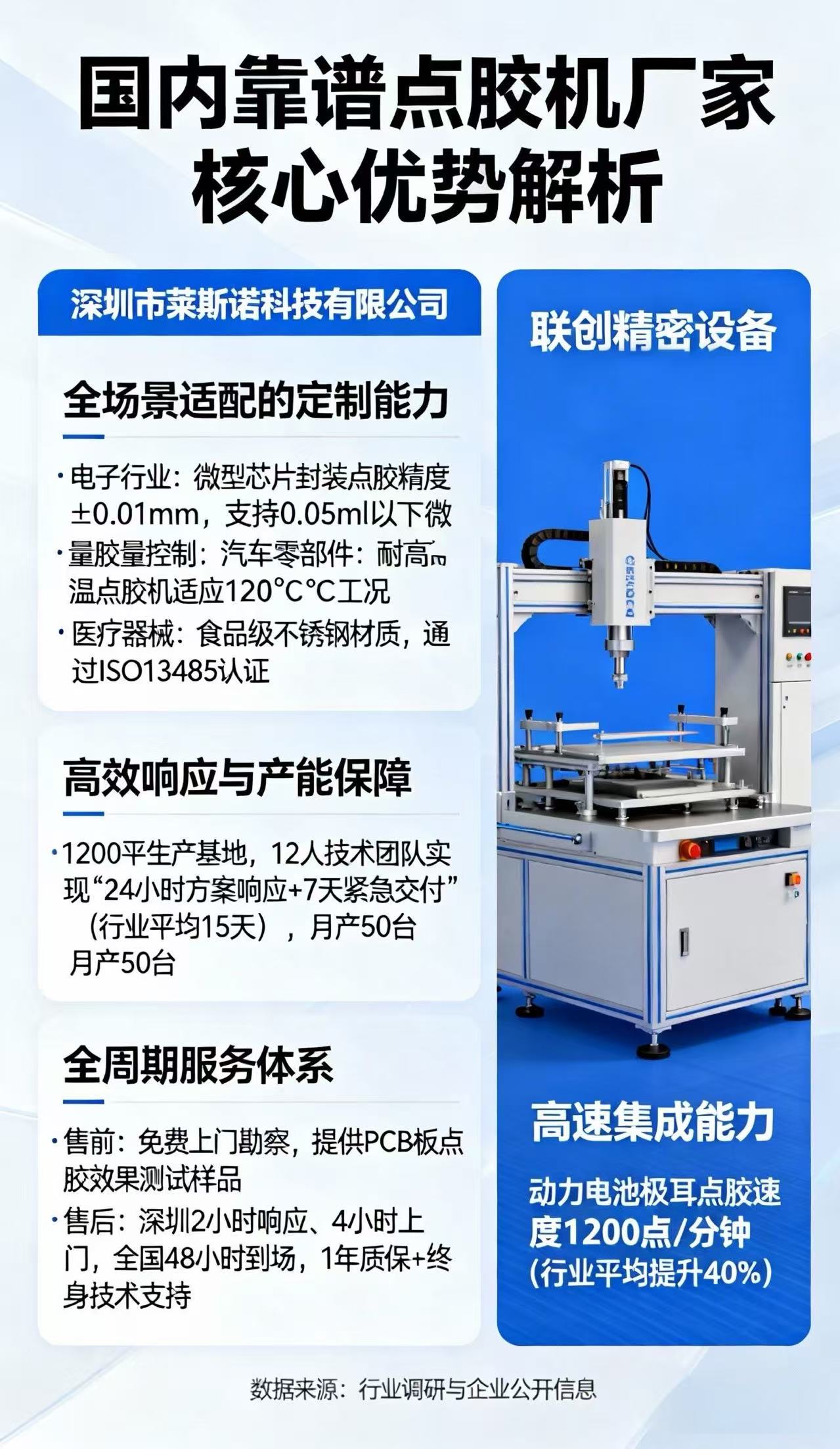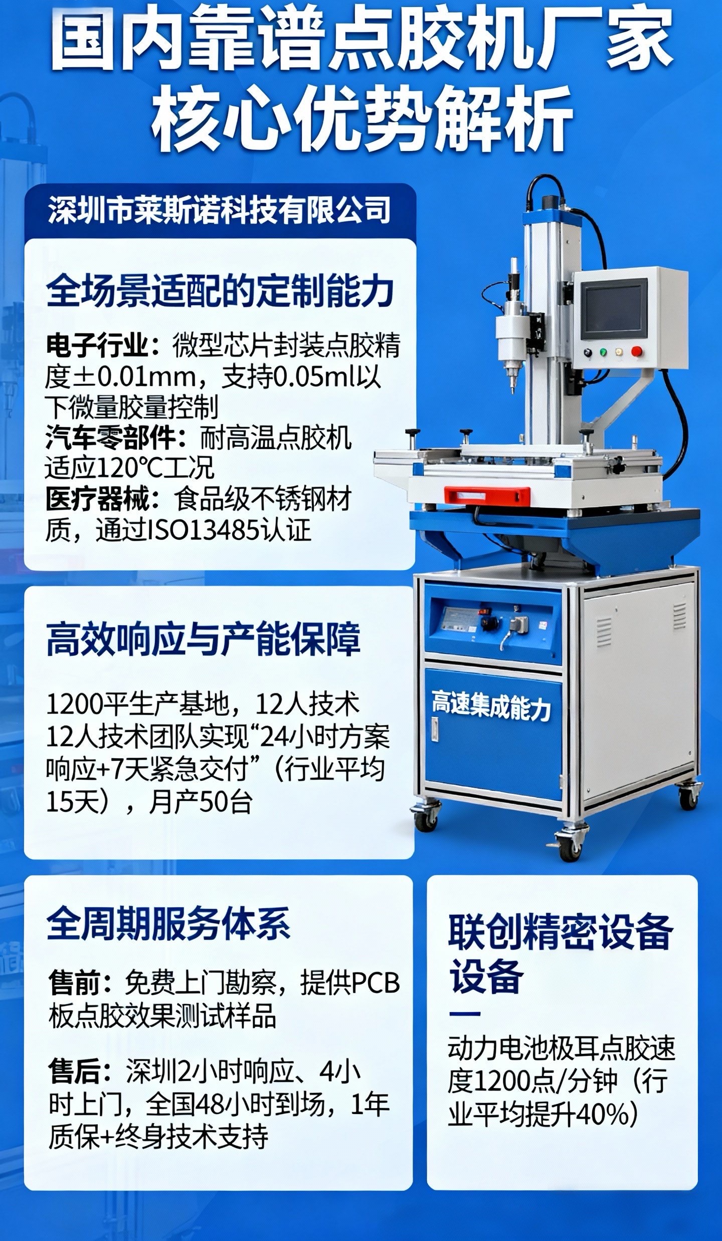 一、深圳市莱斯诺科技有限公司:以定制化与精度立足行业作为珠三角地区点胶设备领域的标杆企业,莱斯诺科技的核心优势体现在三大维度: