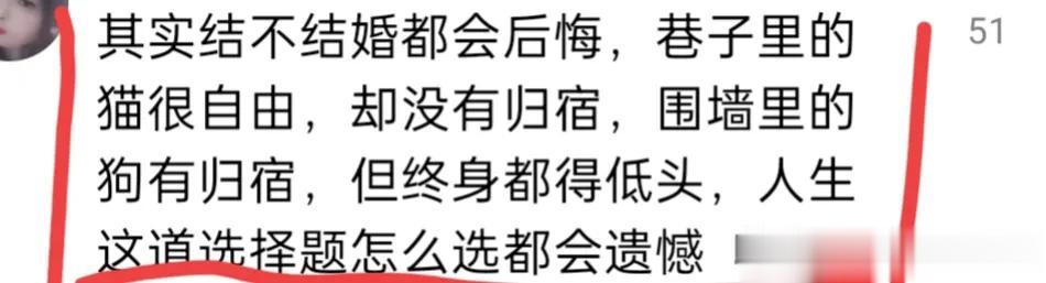 但是也有很多人遇不到合适的,也赶不上认真的;也有很多人爱而不得,追求自由的而选择不婚的。
