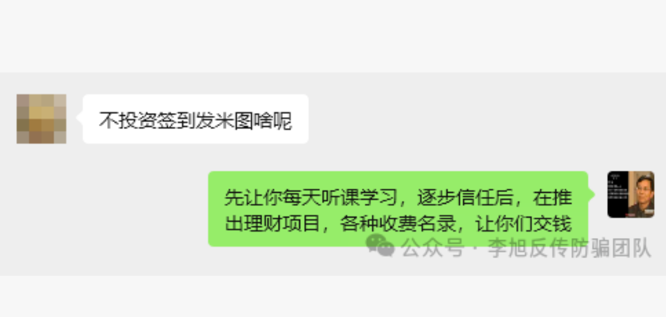 你知道什么样的骗局中老年最容易中招吗?结合李旭反传防骗团队近两年成千上万条咨询信息,我们发现,那些打着“不投资,签到就发米”的项目,迷惑性最强。