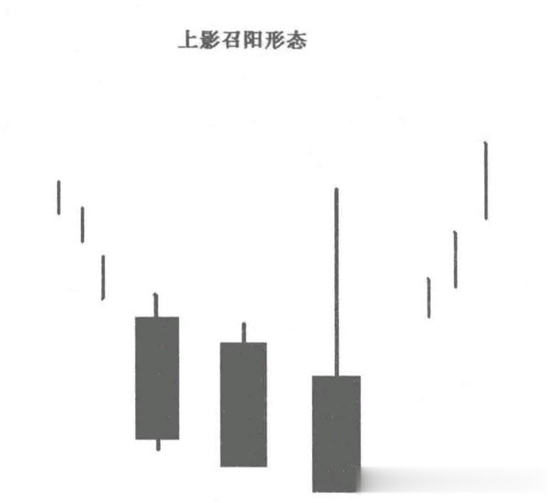 (1)上影召阳形态出现在持续大幅下跌之后,意味着探明大底,大势转向中长期上升,因而是一个强烈的买入信号,此时投资者应该果断买入,并坚持中线持股策略不动摇。