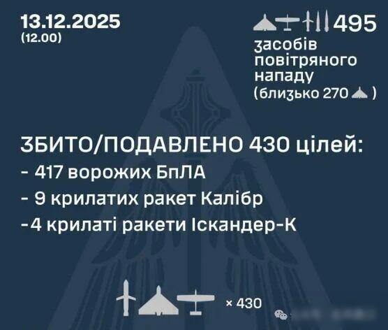 12月13号,俄军一口气放出465架无人机和30枚导弹,专门瞄准乌克兰后方的设施,乌军拼命拦截,最终打下417架无人机和13枚导弹,拦截率差不多九成,这仗打得特别激烈,前线一天发生了300次小规模战斗,是开战以来最密集的一天,西尔斯基自己也承认,俄军现在不光向前推进,还针对炼油厂、钻井平台甚至运输船进行攻击,明显是想切断乌克兰的能源命脉。